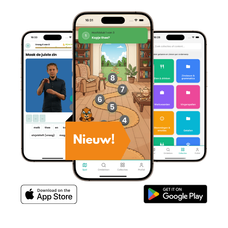 Hier ga je de diepte in: meer dan 450 lesvideo’s waarin je Nederlands Gebarentaal leert, met duidelijke modules en aandacht voor dovencultuur en communicatie. Hier kan je ook gebaren opzoeken in de woordenboek!